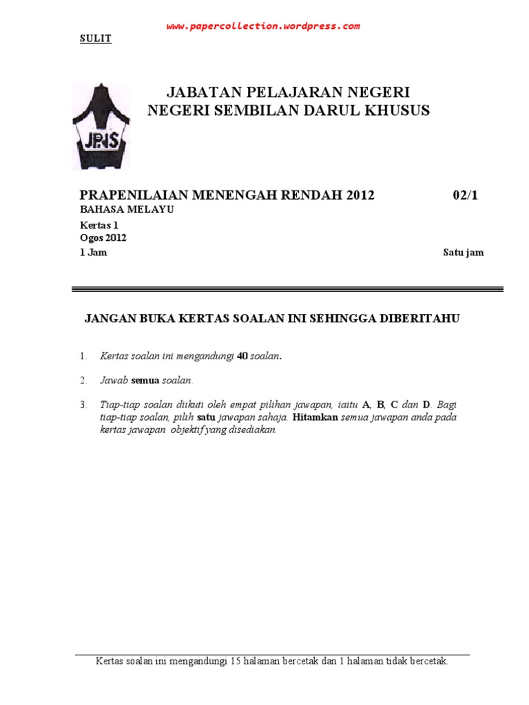 Koleksi Kertas Soalan Peperiksaan Percubaan PMR 2013 Trial PMR 2013 Examination Papers. Bahasa Melayu BM Trial PMR 2013 Examination Papers. Home PMR 2012 Soalan Percubaan PMR Soalan Percubaan PMR BM 2012 Soalan Percubaan PMR 2012 Bahasa Melayu.